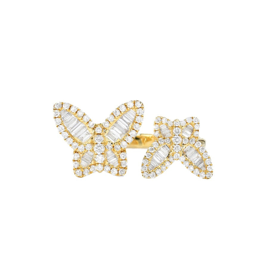 The Between Butterflies Diamond Ring features 0.75 Total Carats of near colorless diamonds. Available in your choice of 14K White Gold, Yellow Gold, or Rose Gold.