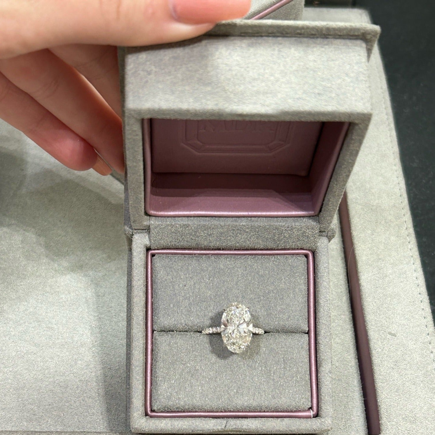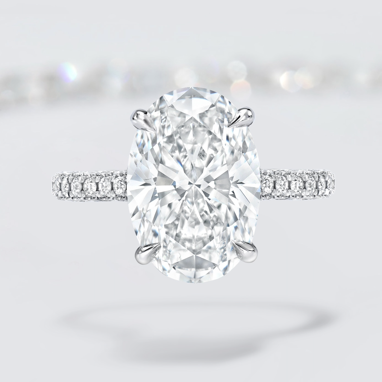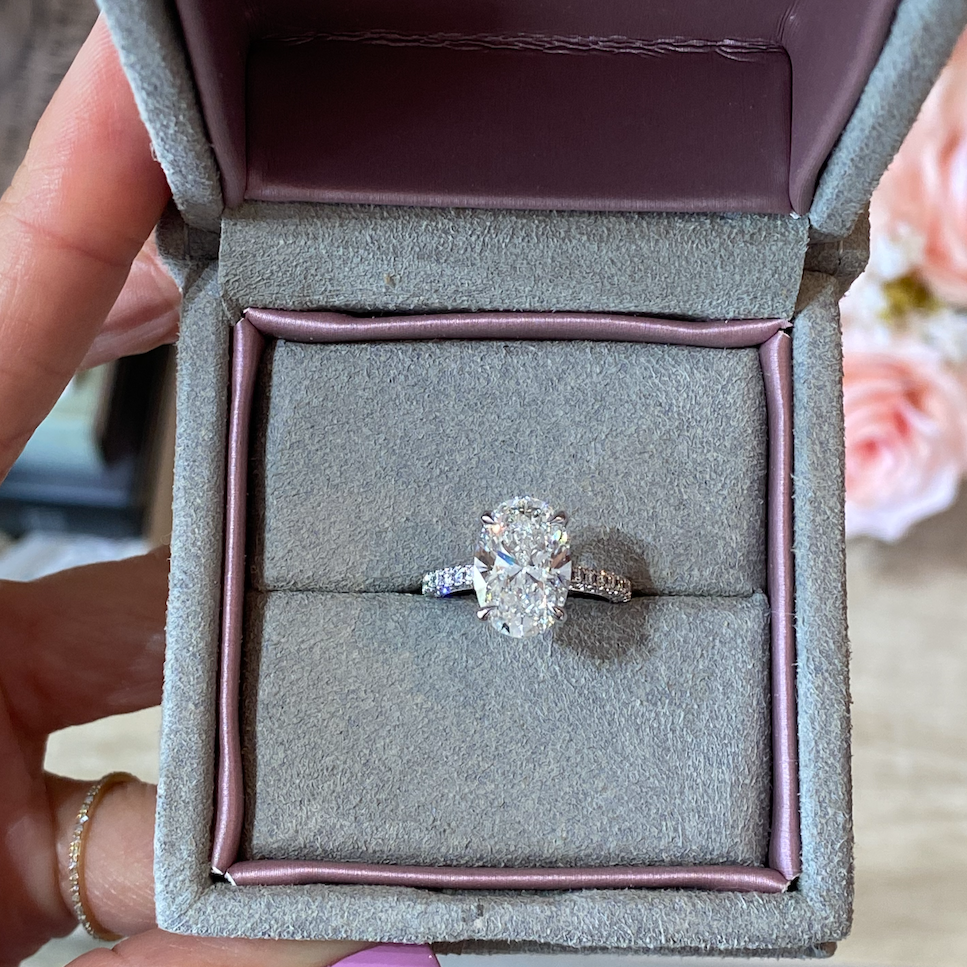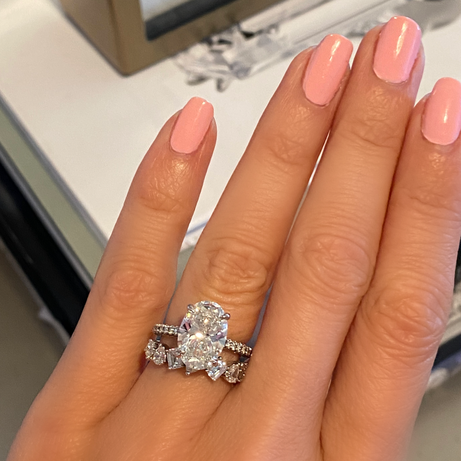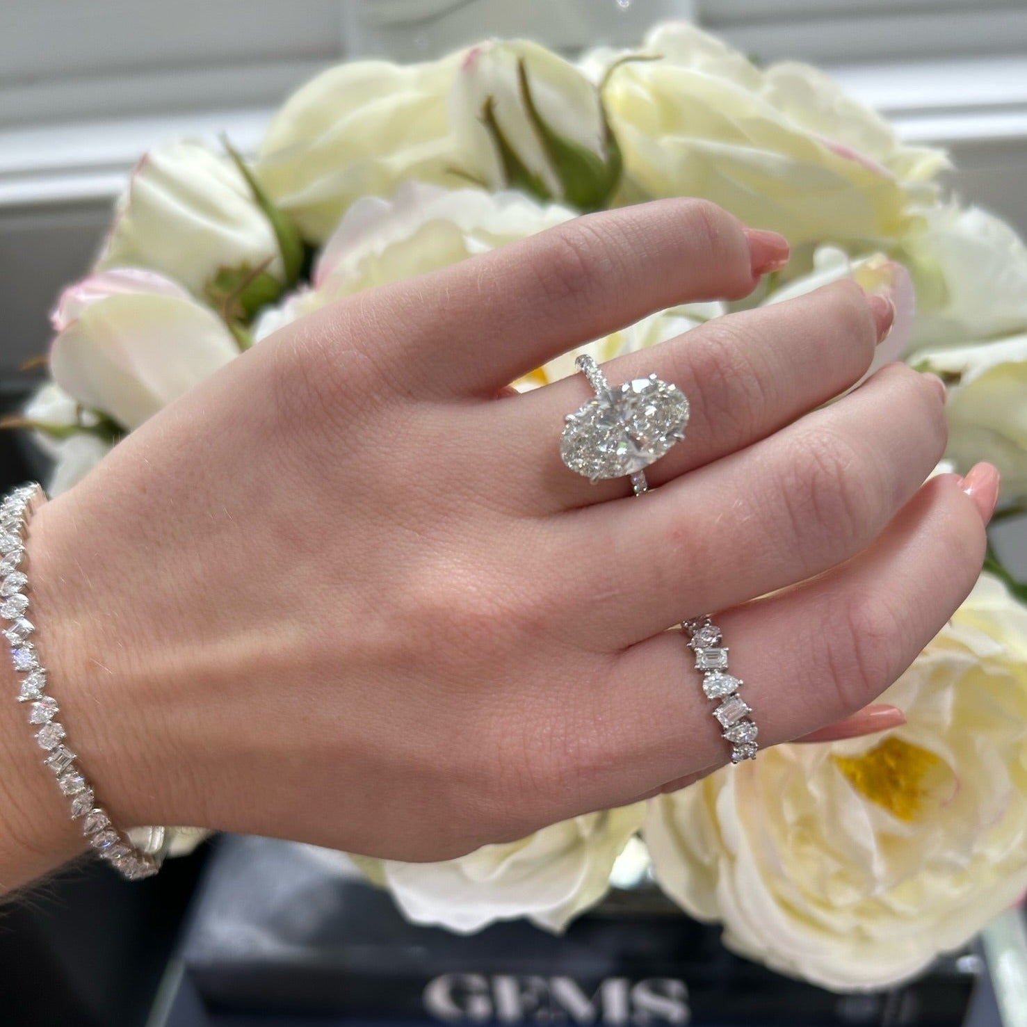 Pictured with a 4 Carat Natural Oval Brilliant Cut Diamond