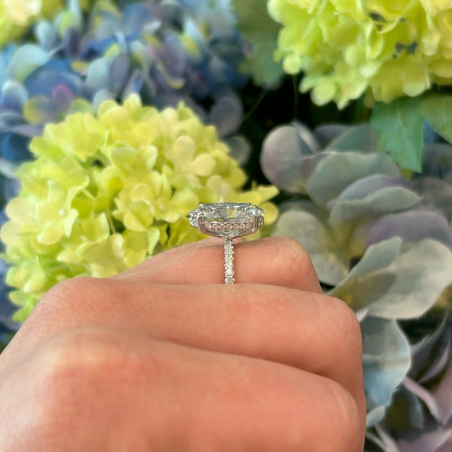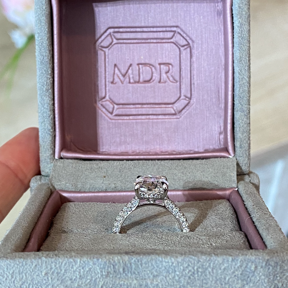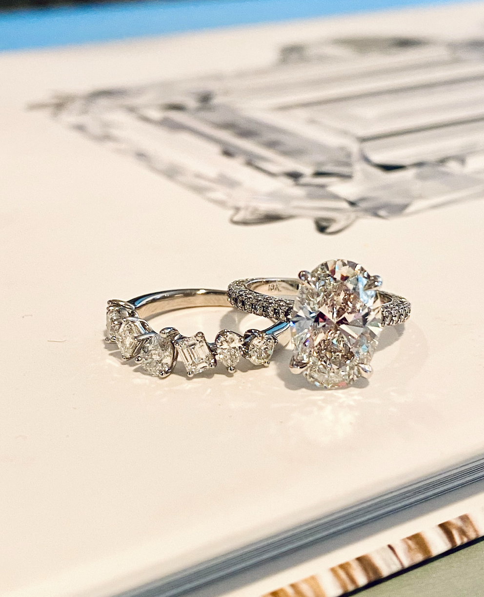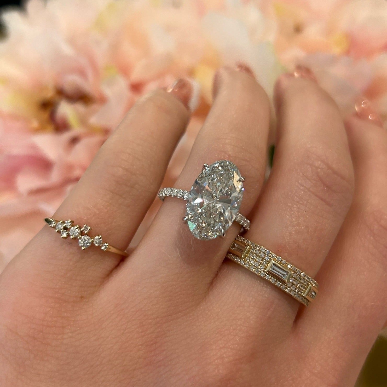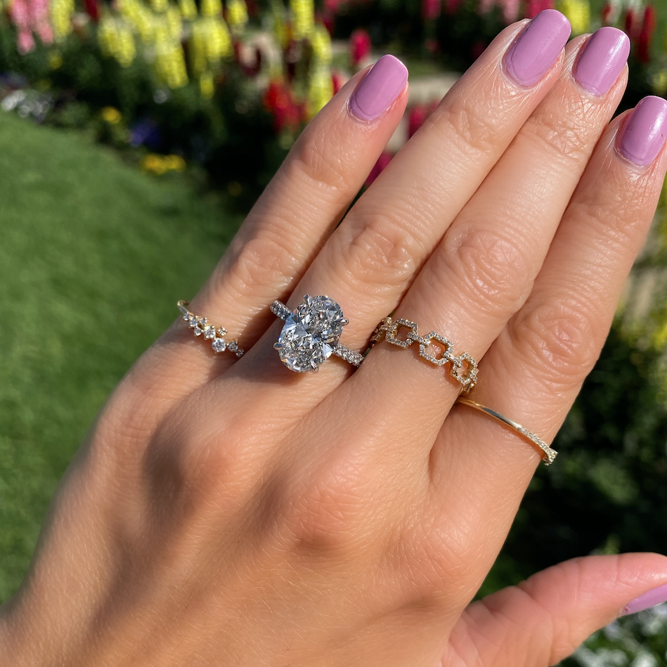 Pictured with a 4 Carat Natural Oval Brilliant Cut Diamond