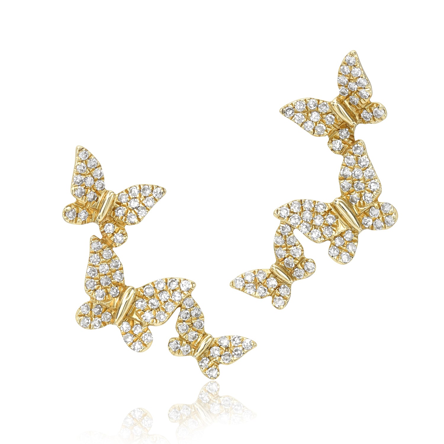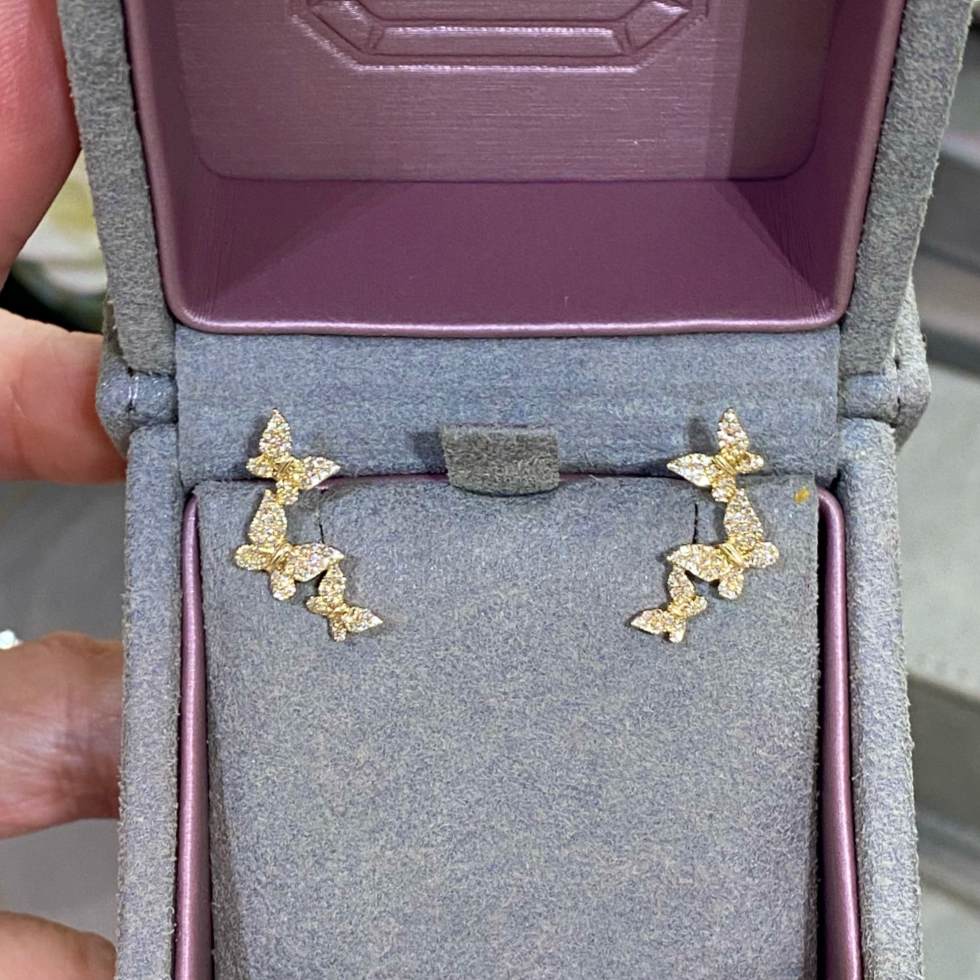 Experience butterfly kisses each time your wear the Field of Butterflies Climber Earrings. Featuring 0.36 Carats of Pave Diamonds, these ear climbers cover multiple holes, so if you are looking to take a break for 2-3 piercings in each ear, these stunners have got your ears covered!