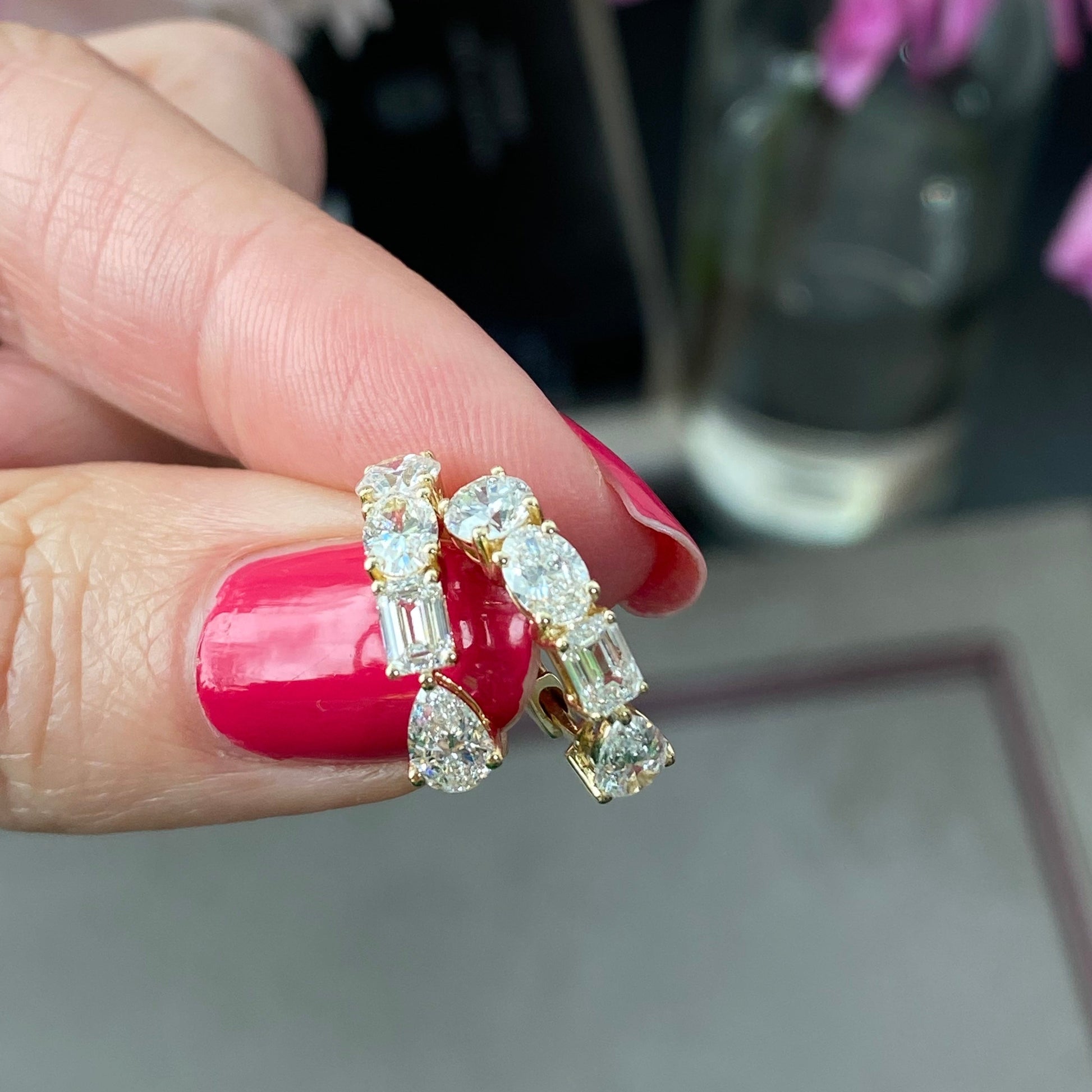 The Mixed Diamond Huggie Hoop Earrings feature 2.00 total Carats of Mixed Cut Diamonds.