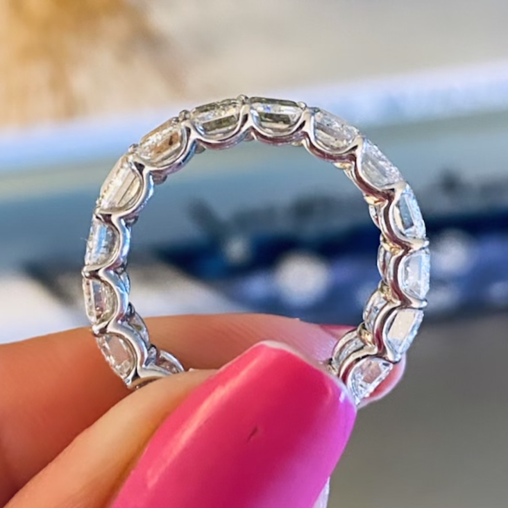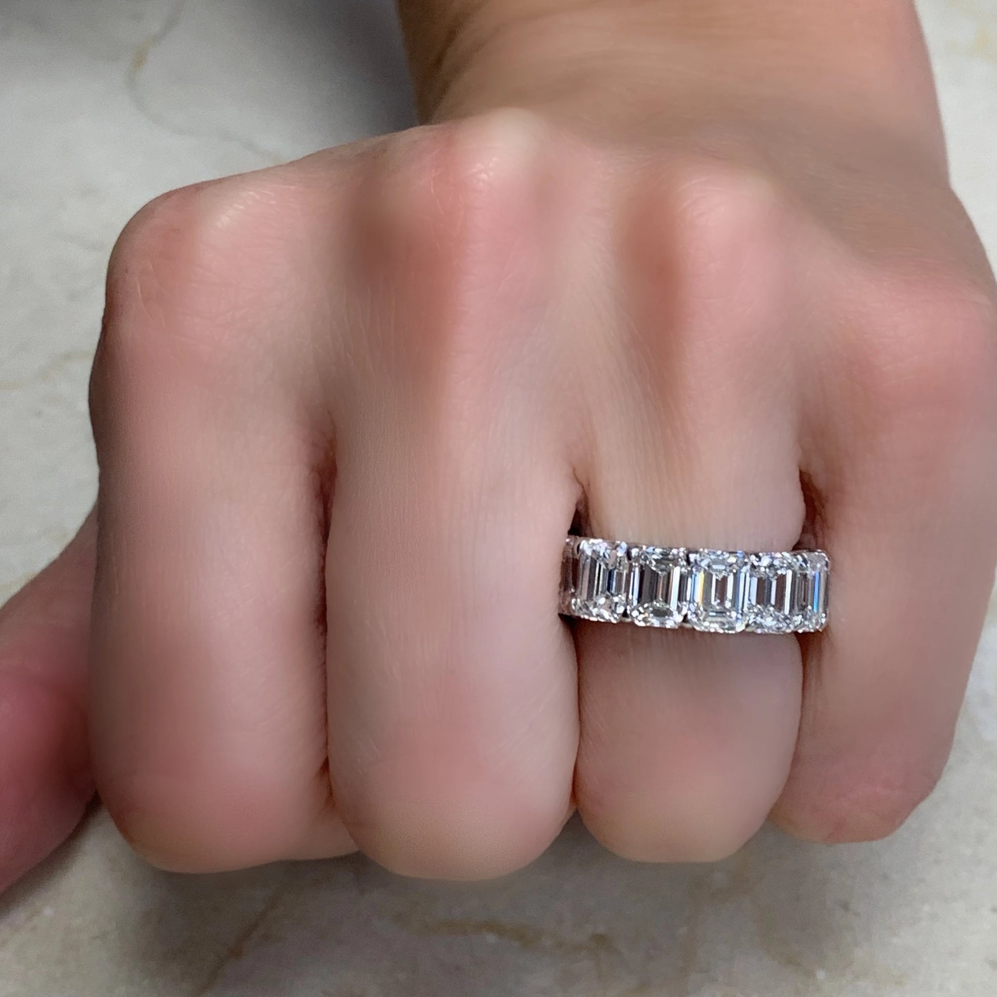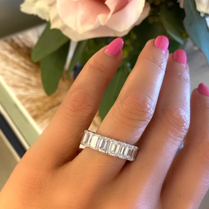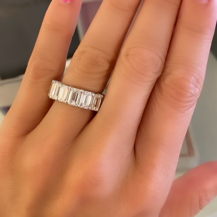 This bespoke Emerald Cut Diamond Eternity Ring is available starting at 5.00-Carat total weight and your choice of Natural or Lab Grown Diamond.