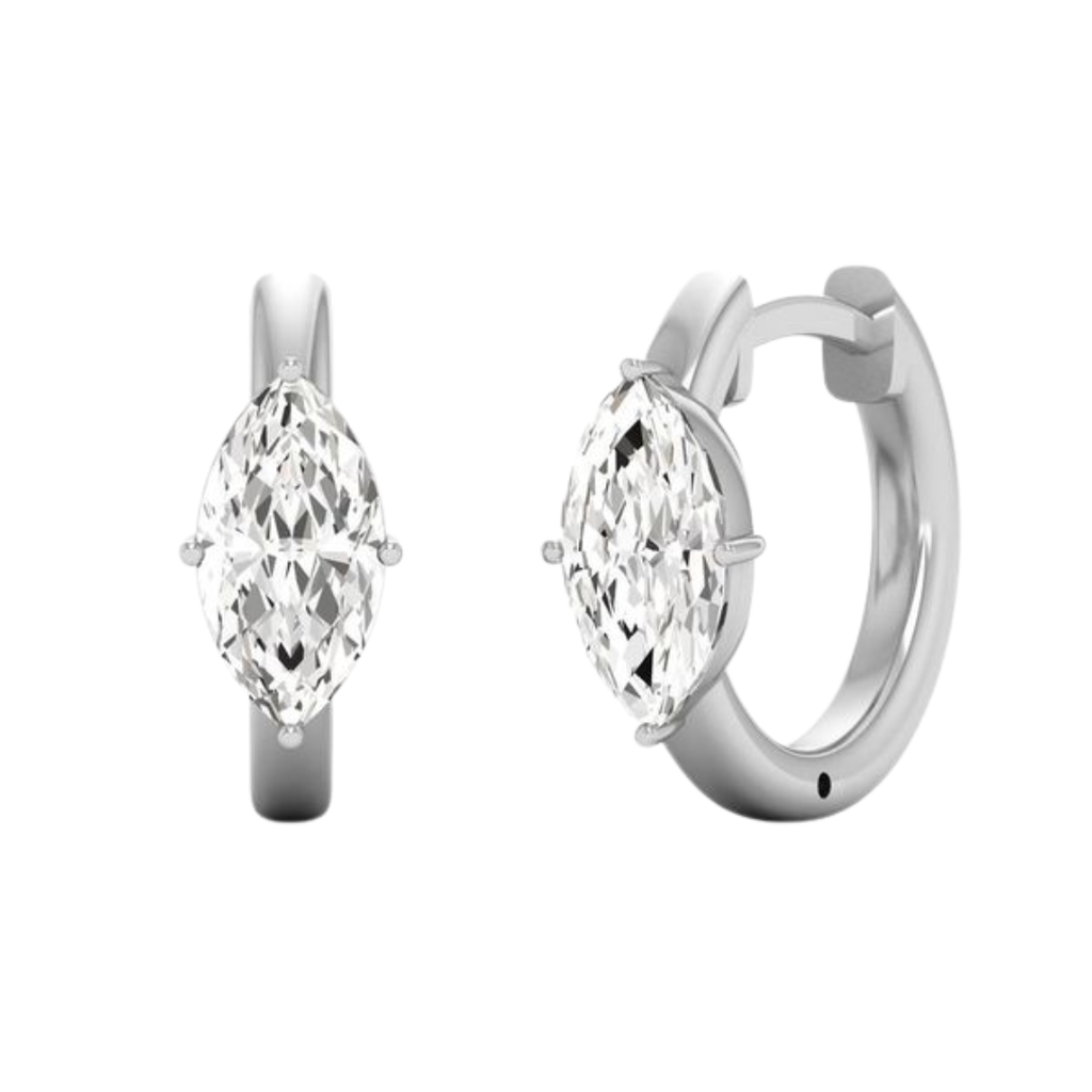 The Huggie Earrings are the most comfortable AND chic pair of earrings you will ever wear. Miss Diamond Ring carefully selects each 0.50 Carat (1.00 Total Carat Weight) F VS2 Lab Grown Diamond just for you and set them in your choice of 14K White Gold, Yellow Gold, or Rose Gold.