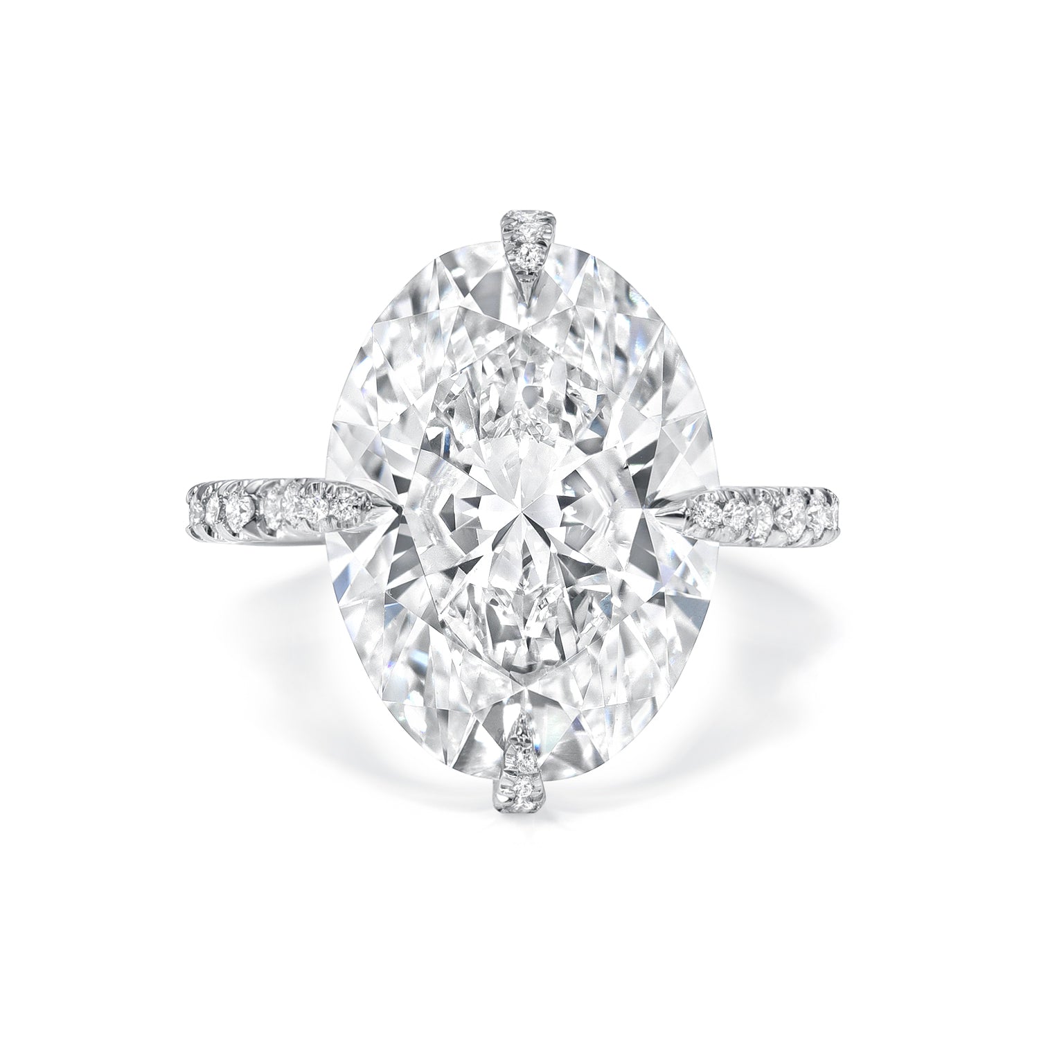Pictured with a 7 Carat Oval Cut Diamond and Colorless Accent Diamonds, approximately 0.70 total Carats