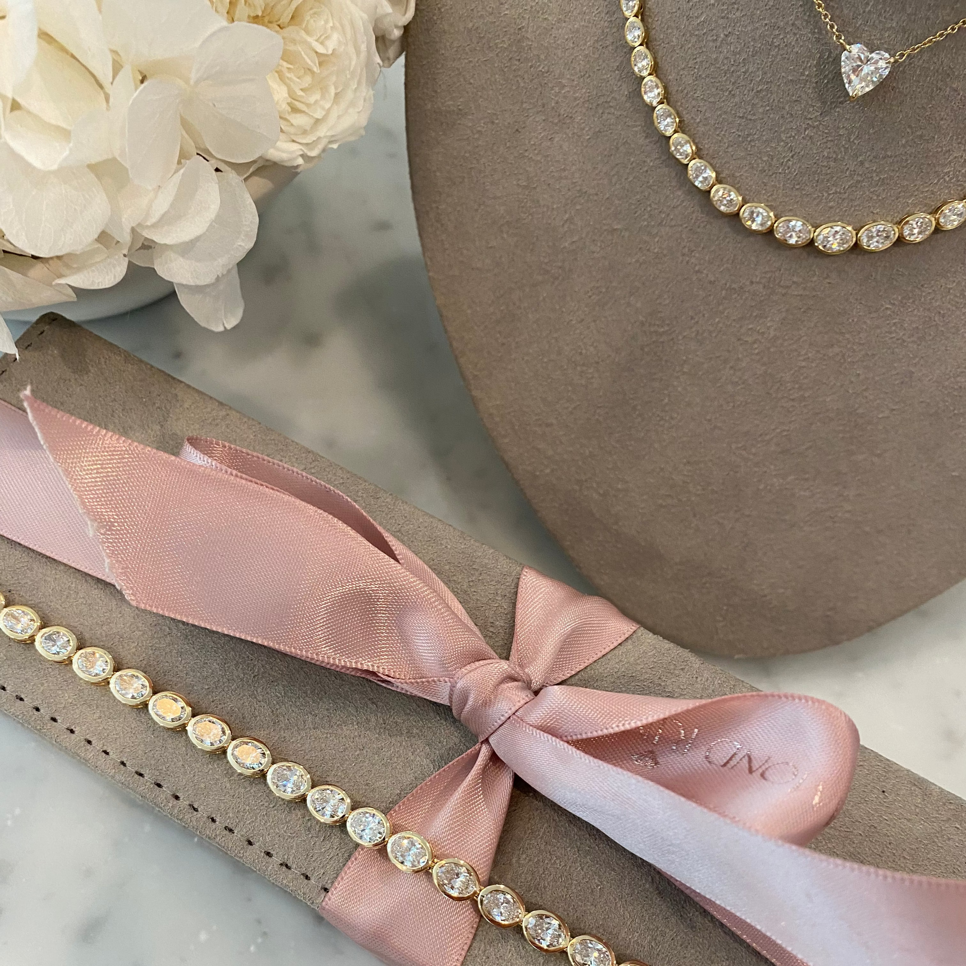 Elevate your jewelry game with this striking twist on a classic. The Oval East West Bezel Diamond Bracelet features 10 carats of colorless, Lab Grown Oval Diamonds, each expertly set in a modern East West Bezel design that adds an effortlessly chic edge.