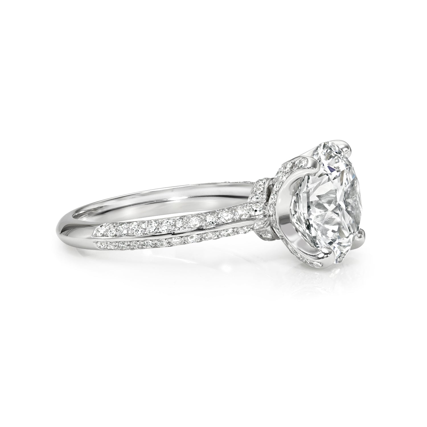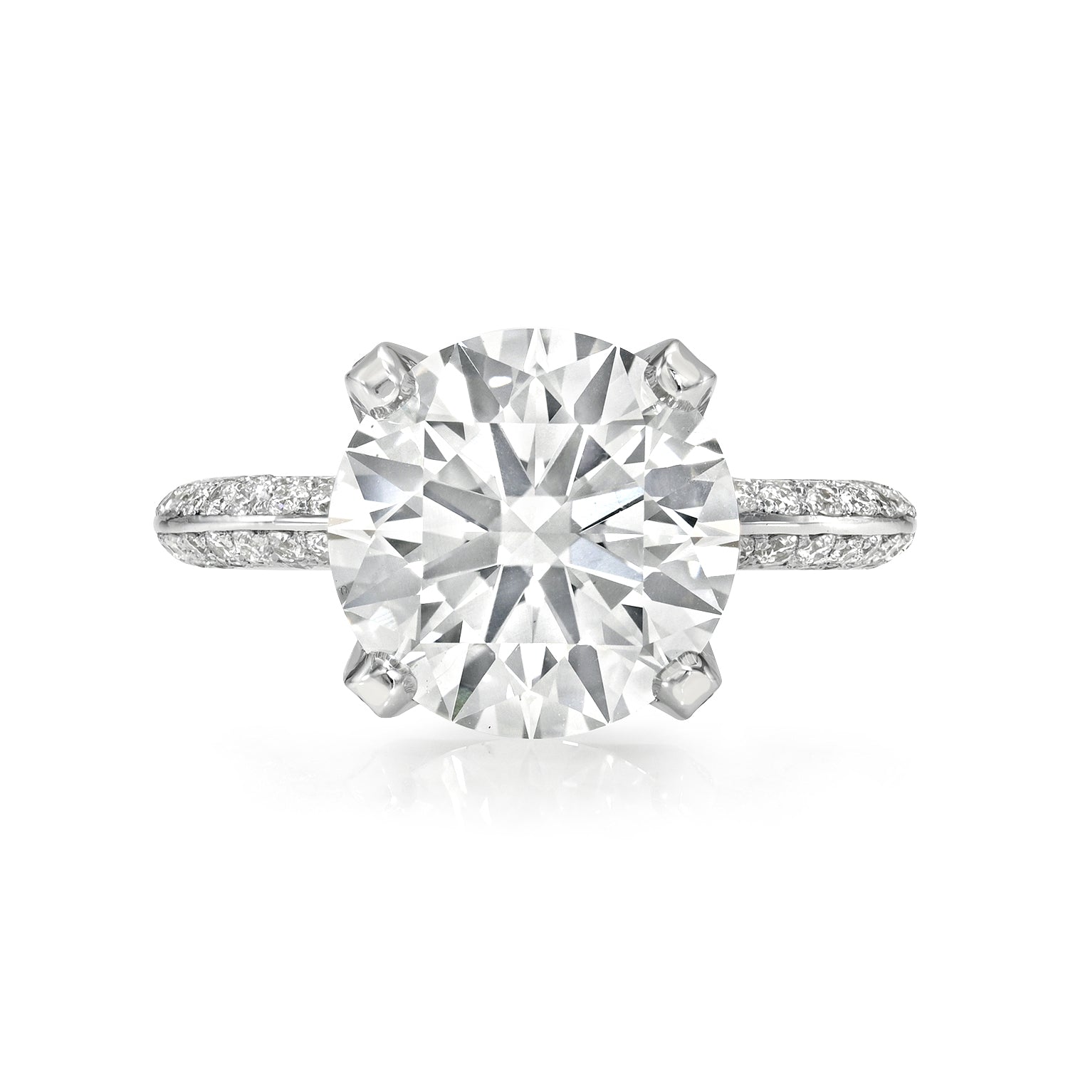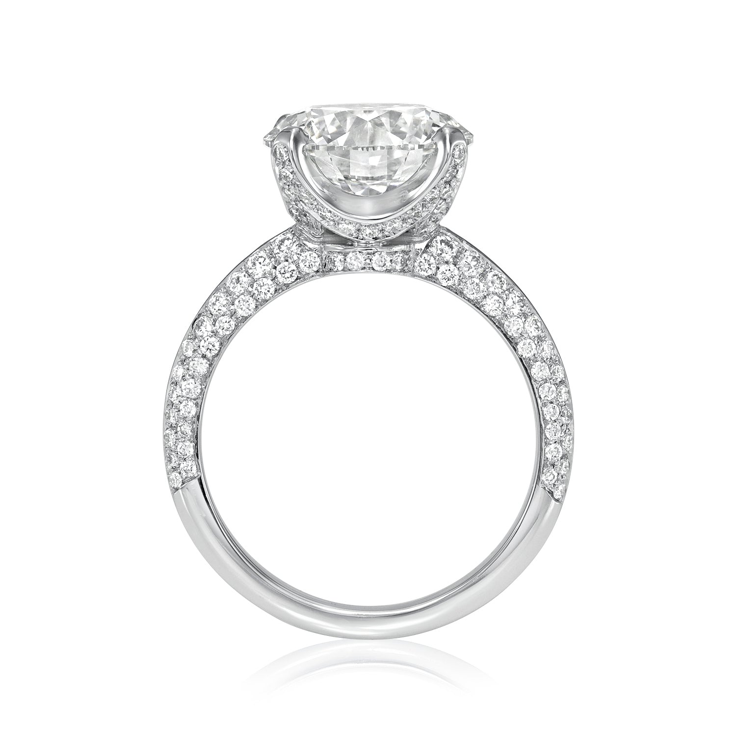 Round Cut Diamond Pave Engagement Ring Double Pave Band